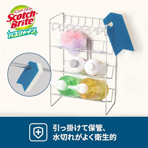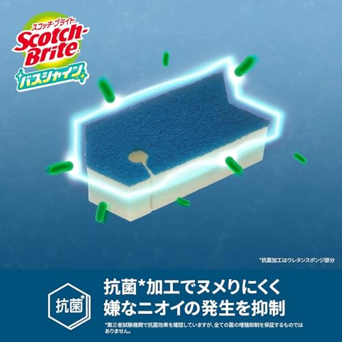 100均のスポンジなど、色々試しましたが、汚れの落ち具合や耐久性を考えて行き着いたのが、スリーエムの「スコッチブライト バスシャイン」というお風呂掃除用スポンジです。