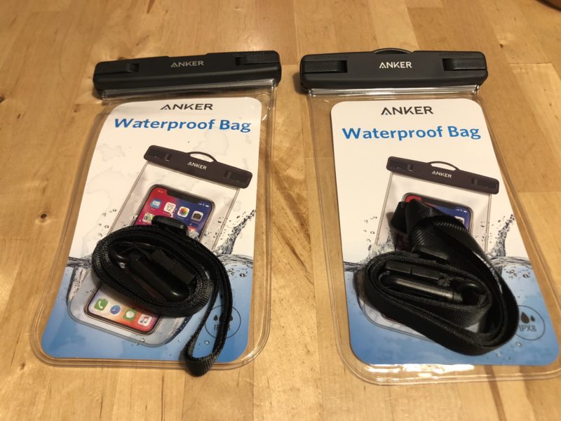 最近は防水機能のついたスマホも増えてきましたがやはり濡れると心配なので防水ケースに入れておきます。